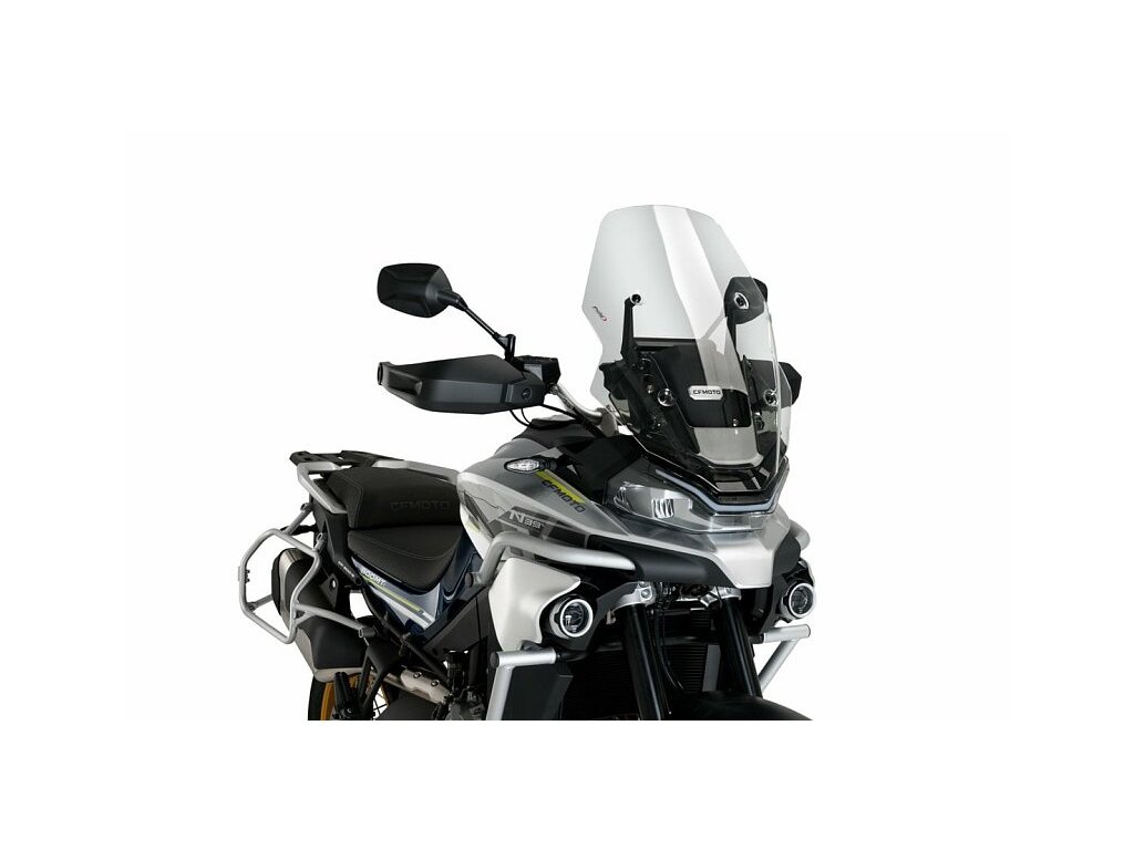 Zvýšené turistické plexi španělské značky Puig navržené na míru CFMOTO 800MT. O 105 mm vyšší než originální plexi, snadná instalace pomocí původních šroubů. K dispozici v čiré, kouřové a tmavé barvě.