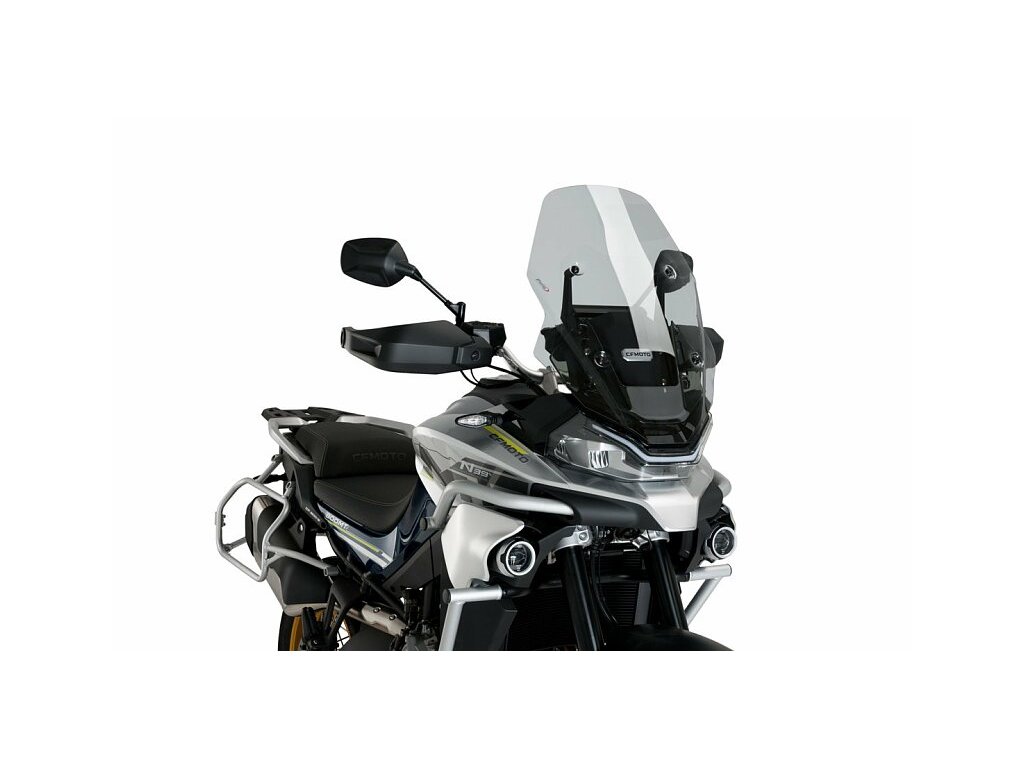 Zvýšené turistické plexi španělské značky Puig navržené na míru CFMOTO 800MT. O 105 mm vyšší než originální plexi, snadná instalace pomocí původních šroubů. K dispozici v čiré, kouřové a tmavé barvě.
