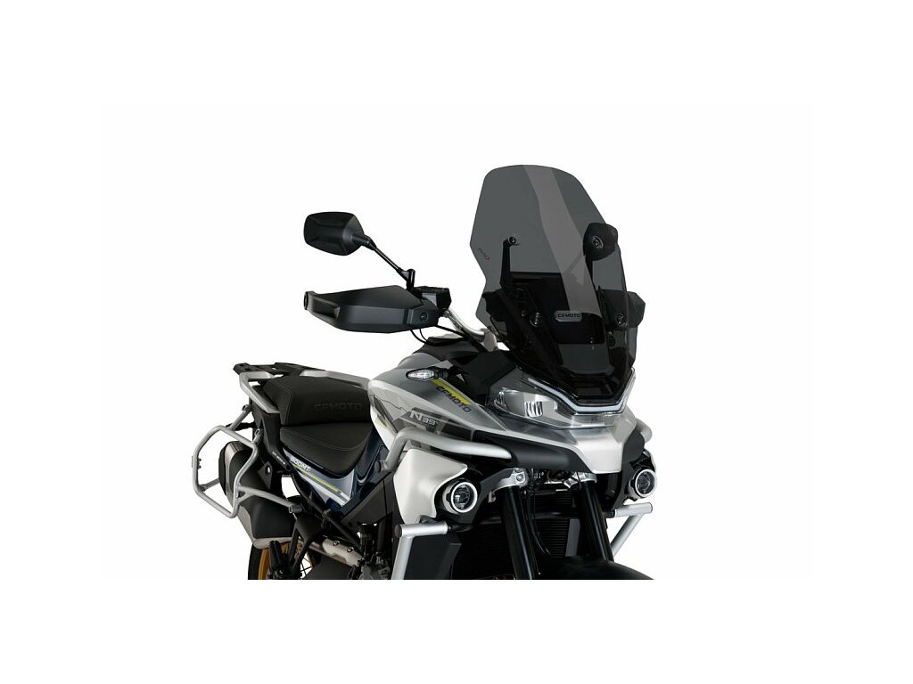 Zvýšené turistické plexi španělské značky Puig navržené na míru CFMOTO 800MT. O 105 mm vyšší než originální plexi, snadná instalace pomocí původních šroubů. K dispozici v čiré, kouřové a tmavé barvě.