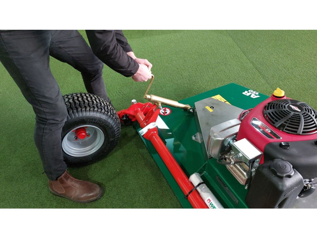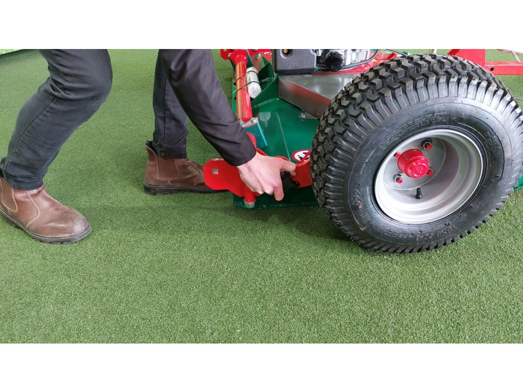 Výšku sečení lze snadno nastavit v rozsahu 25–200 mm, takže AR-150-R zvládne jak udržované trávníky, tak i vyšší porosty. Robustní konstrukce a pneumatiky 18×8.5–8 poskytují stabilitu i na nerovném terénu.