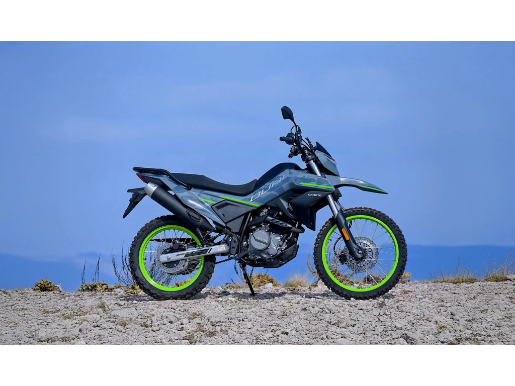 CFMOTO 250DUAL vyniká moderním a funkčním designem, který spojuje atraktivní vzhled s praktičností. Výrazný LED přední světlomet poskytuje vysokou svítivost a zárověň Ti zajistí bezpečí, že budeš dobře viděn.