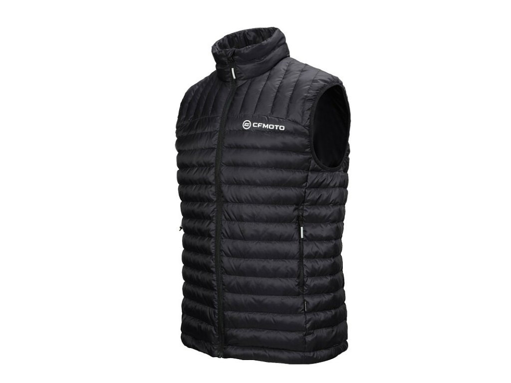 Lehká volnočasová péřová vesta z oficiální kolekce CFMOTO v tmavě modré až černé barvě.