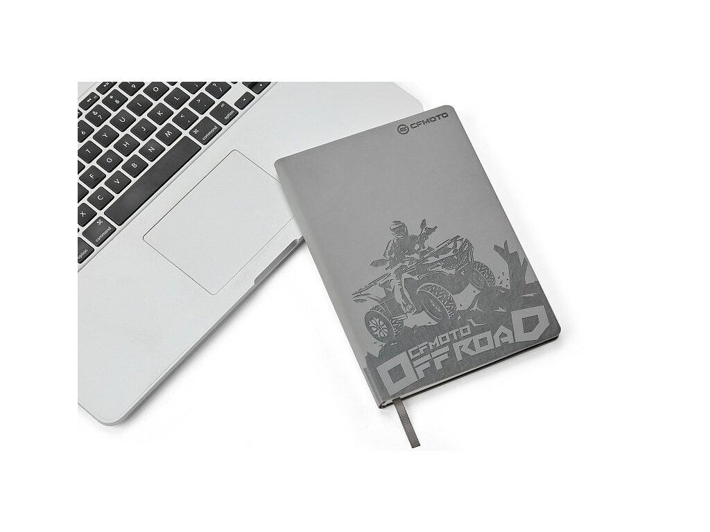 Poznámkový blok CFMOTO formátu A5 s čtverečkovanými listy a měkkou obálkou z kvalitní PU kůže.