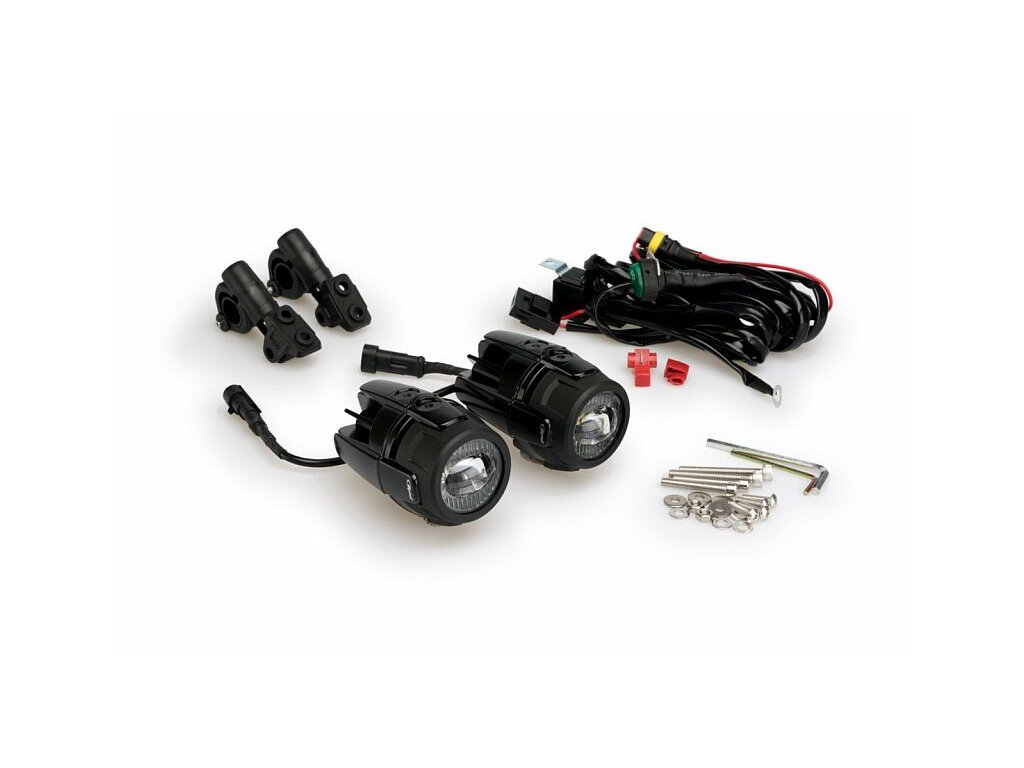 Sada dvou homologovaných přídavných mlhových LED světlometů s bílým světlem pro lepší viditelnost za tmy, mlhy, deště nebo sněhu. Vhodné pro čtyřkolky i motorky, ideálně pasují například na padací rám motocyklů CFMOTO 650MT a 700MT.