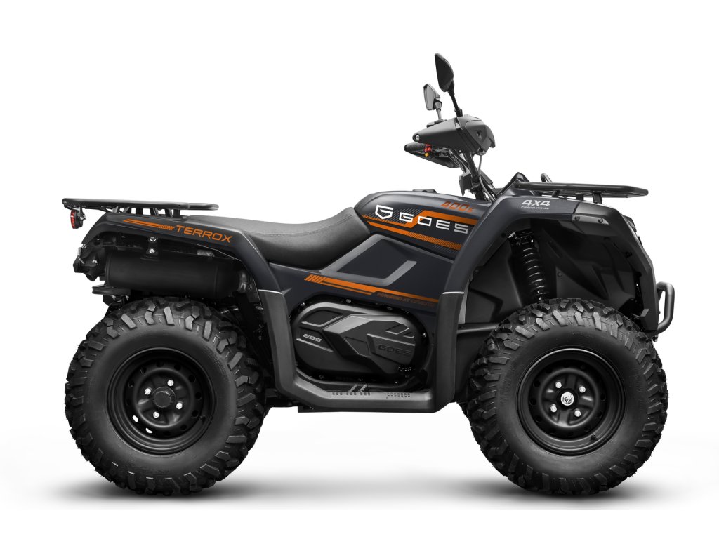 GOES TERROX 400-A dlouhá verze poskytuje pohodlný a prostorný prostor pro dvě osoby. Díky silnému výkonu a efektivnímu točivému momentu snadno zvládne jakoukoliv překážku, a to i při maximálním zatížení. Tento model je atraktivní volbou v kategorii čtyřkolek střední třídy, které kombinují praktičnost a zábavu.