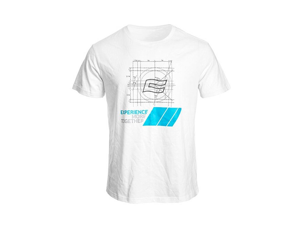 Pohodlné pánské bílé triko CFMOTO EMT s moderním designem.